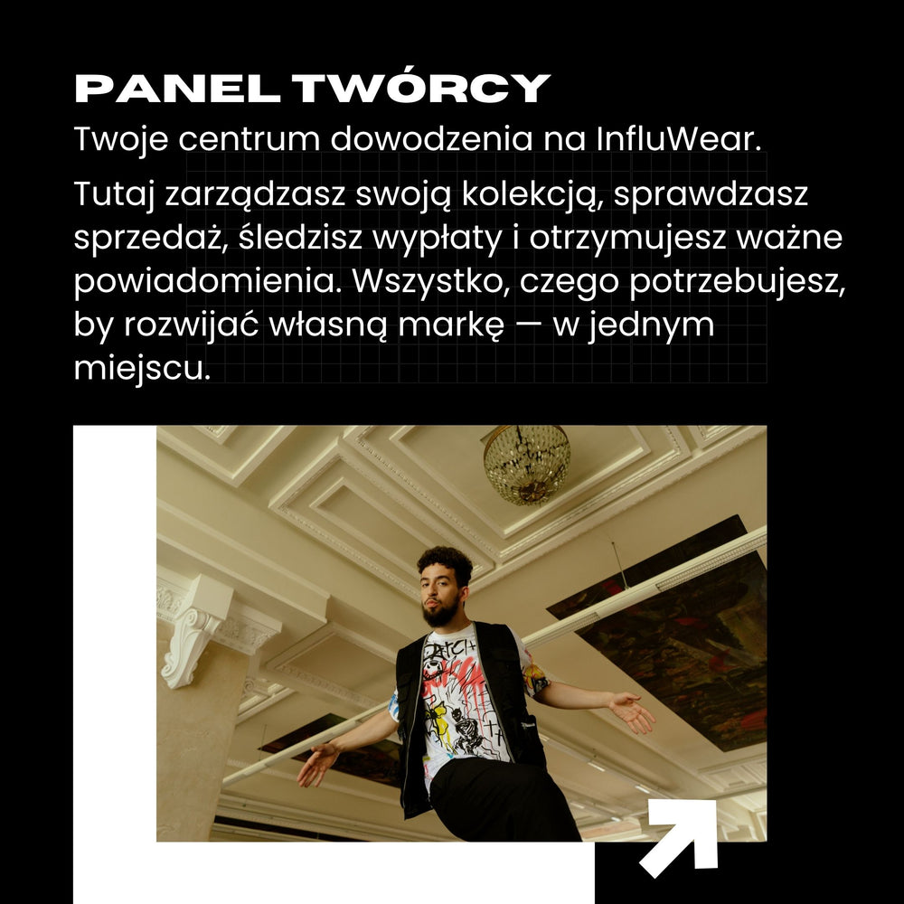 Panel Twórcy to Twoje osobiste centrum zarządzania kolekcją na InfluWear. Znajdziesz w nim wszystkie niezbędne narzędzia do monitorowania sprzedaży, tworzenia linków, śledzenia prowizji oraz wypłat. Panel działa w oparciu o sprawdzone i intuicyjne narzędzie.