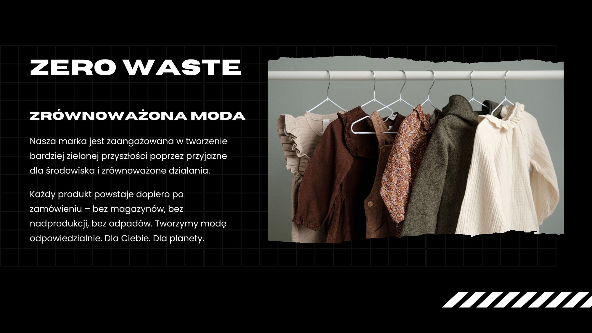 Nie istnieje coś takiego jak „niesprzedana kolekcja”. Jeśli nikt nie zamówi danego produktu, on po prostu nie zostaje wyprodukowany. Dlatego nasze kolekcje nie zalegają w magazynie, nie trafiają do wyprzedaży, nie kończą jako odpad. To kwintesencja zero waste.