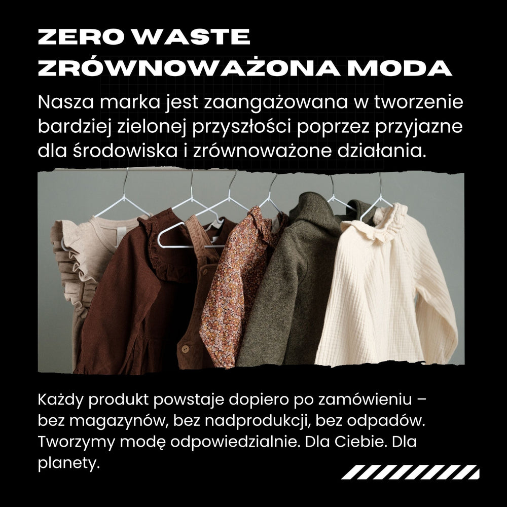 To znaczy, że nie produkujemy ubrań „na zapas”. Każdy produkt powstaje dopiero wtedy, gdy ktoś go zamówi. Nie magazynujemy nadwyżek, nie marnujemy tkanin i nie generujemy zbędnych odpadów. Produkujemy tylko tyle, ile potrzeba – dokładnie dla Ciebie.